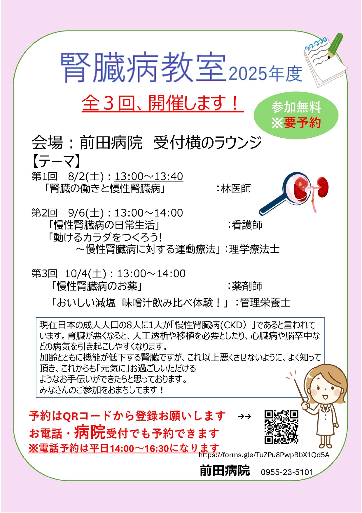 2025年度腎臓病教室を開催いたします。